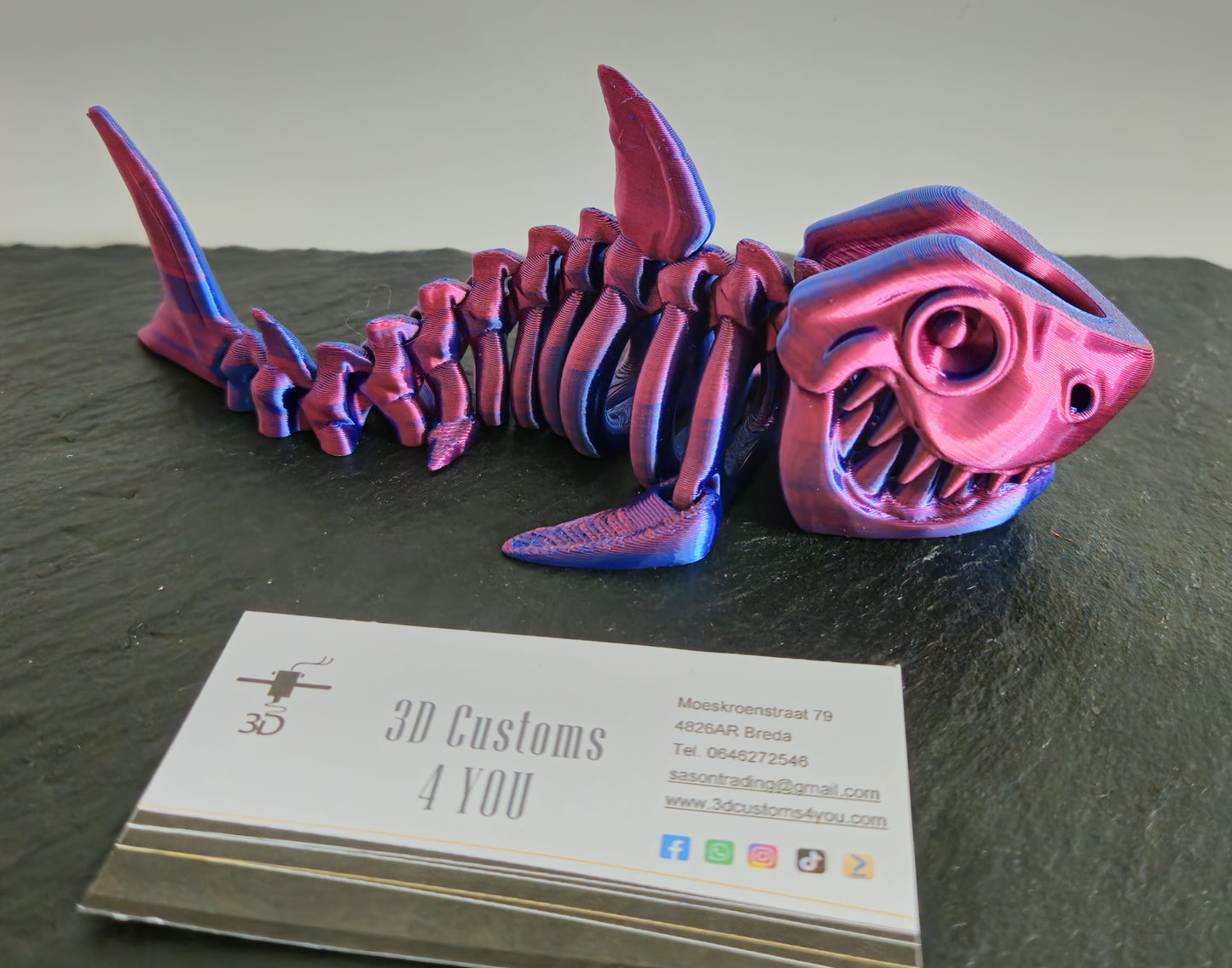 Deze prachtige 3D geprinte Haai skelet is zeer flexibel en ±17 cm lang.